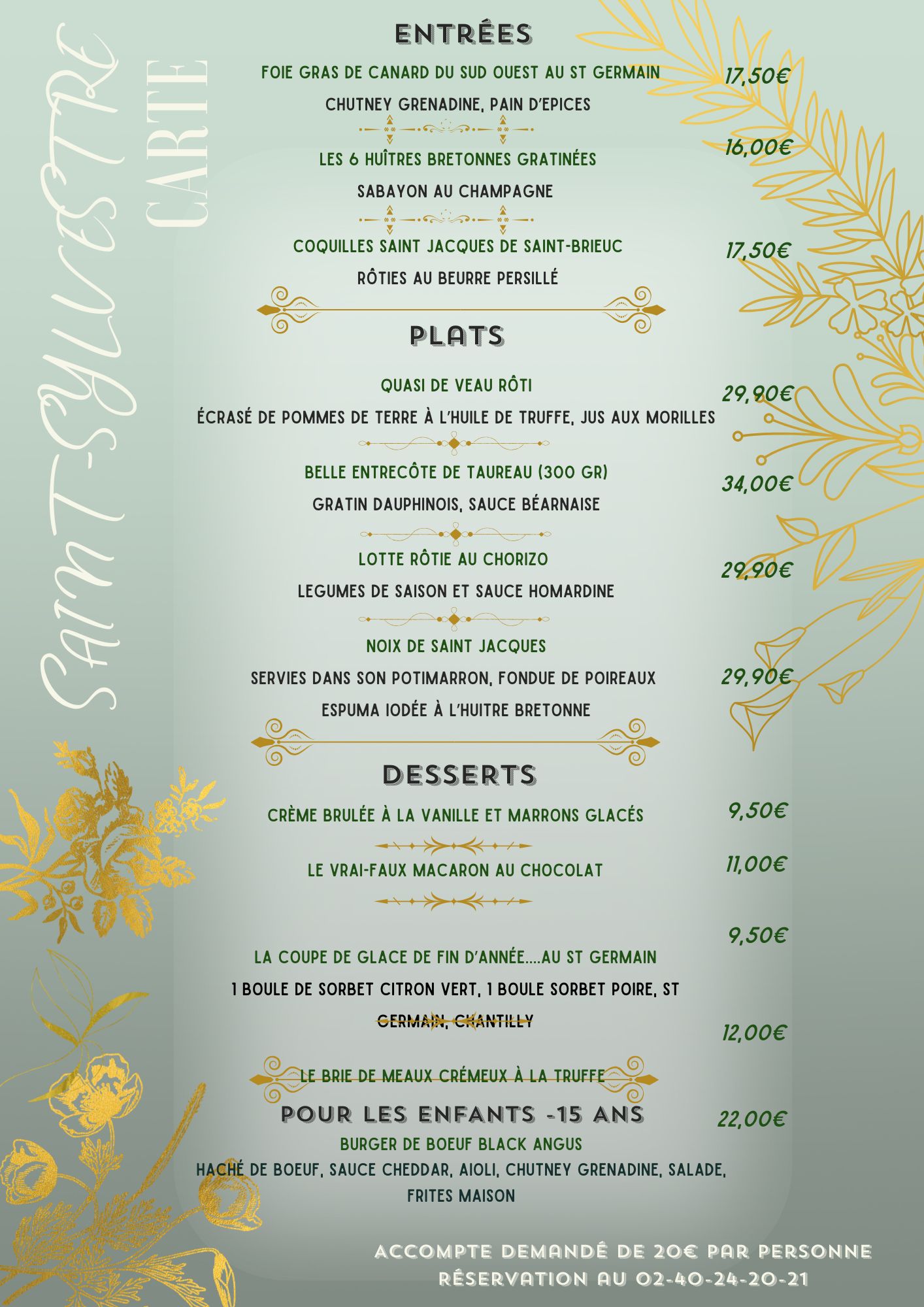 Acompte demandé de 20€ par personne réservation au 02-40-24-20-21